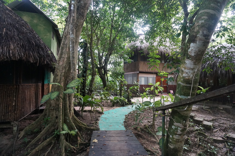 На въезде в Эль Панчан находится небольшая будка-ресепшен с информацией для бронирования. После того, как вы уладите все вопросы, связанные с бронированием, передвигаясь по мостику, вы попадете на территорию джунглей. Там разбросаны небольшие одноэтажные и двухэтажные домики, расположенные направо и налево вдоль извилистой тропы, среди растений и цветов.