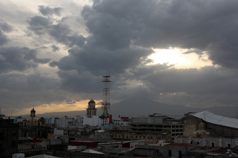 Если вы хотите полюбоваться красотой окрестностей, то посещать Пуэблу позднее марта я бы не советовала. Моя поездка в город состоялась в апреле, и красавцы-вулканы показывались мне один за другим, бегло скрываясь в облаках. К тому же, через несколько дней после моего пребывания Попокатепетль проснулся и задымил, что нередко происходит в жаркое время года. К счастью, активность была довольно слабой, и до эвакуации жителей дела не дошло.