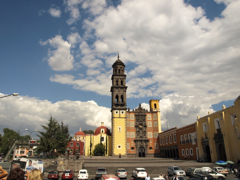 Визитной карточкой города является церковь, построенная на возвышении. Однако при ближайшем знакомстве туристы узнают, что платформой для церкви является не холм, а одна из крупнейших пирамид преиспанской эпохи. Не знаю, понимали ли это конкистадоры, но, построив эту церковь, они навсегда ограничили доступ к изучению пирамиды, так как любая работа археологов, несомненно, повредит собор.