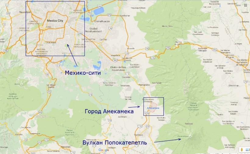 Вулкан Попокатепетль находится в Мексике, в штате Пуэбла, недалеко от столицы страны Мехико. Официальная высота вулкана Попкатепетль – 5426 метров, что делает его второй по высоте горой в Мексике после пика Орисаба. Я считаю и ближайших городок Амекамека очень интересный для неспешных прогулок, так как город зажат между двумя горными массивами и удивительным образом показывает стандартный, континентальный быт мексиканского народа, распространенный на четверти территории страны.