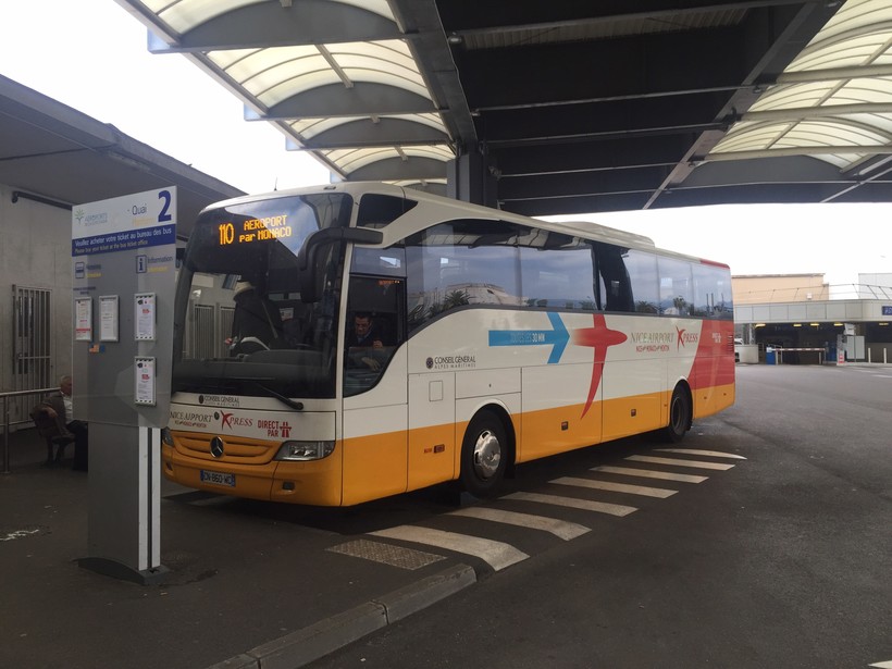 Из аэропорта Ниццы примерно раз в полчаса отправляется автобус №110, следующий до Монако. Он останавливается в обоих терминалах, а затем напрямую отправляется в княжество. Время в пути составит около получаса. Автобусы ездят семь дней в неделю, с 8:45 утра до 21:00. Во внеканикулярные дни рабочей недели последний автобус отправляется в 22:00.