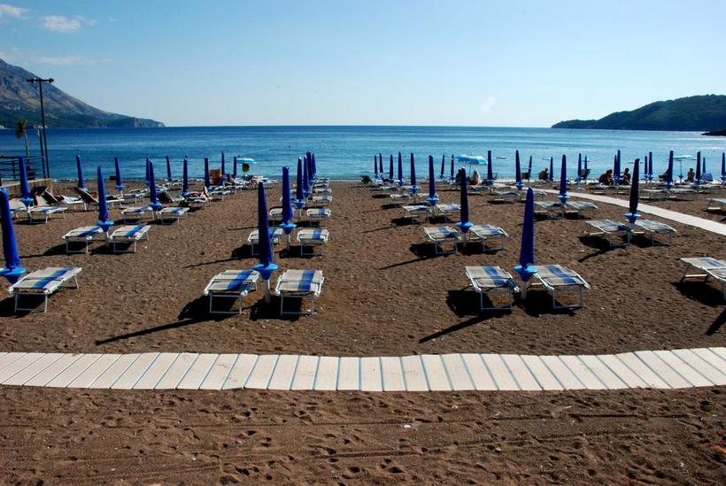 Дольче Вита (Dolce Vita) — большой чистый пляж с бесплатным Wi-Fi, самый первый по пути из Будвы, можно заплатить за лежак, можно загорать на полотенце бесплатно.