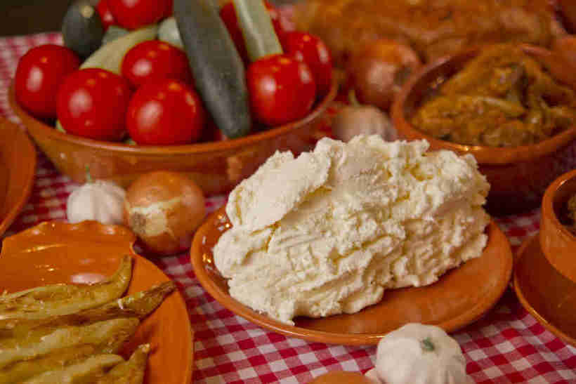 местный кисломолочный продукт — каймак (kajmak), что-то вроде взбитого соленого творога;