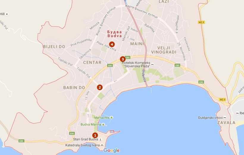 - Район, в котором находится автобусная остановка. Удобно, если вы собираетесь постоянно передвигаться из Будвы на автобусе в другие города. Одновременно расположен недалеко от пляжа и Старого города.