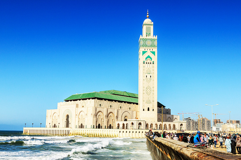 Мечеть Хасана Второго удивительным образом расположена прямо на утесе над Атлантикой. Ее минарет взмывает в небо на 210 метров, а одновременно молиться в ней могут 100 тысяч человек! Вход — 8 EUR, мечеть открыта для посещений в формате экскурсий, которые проводятся в 9, 10,11 и 14 часов, по пятницам — в 9, 10 и 14 часов.