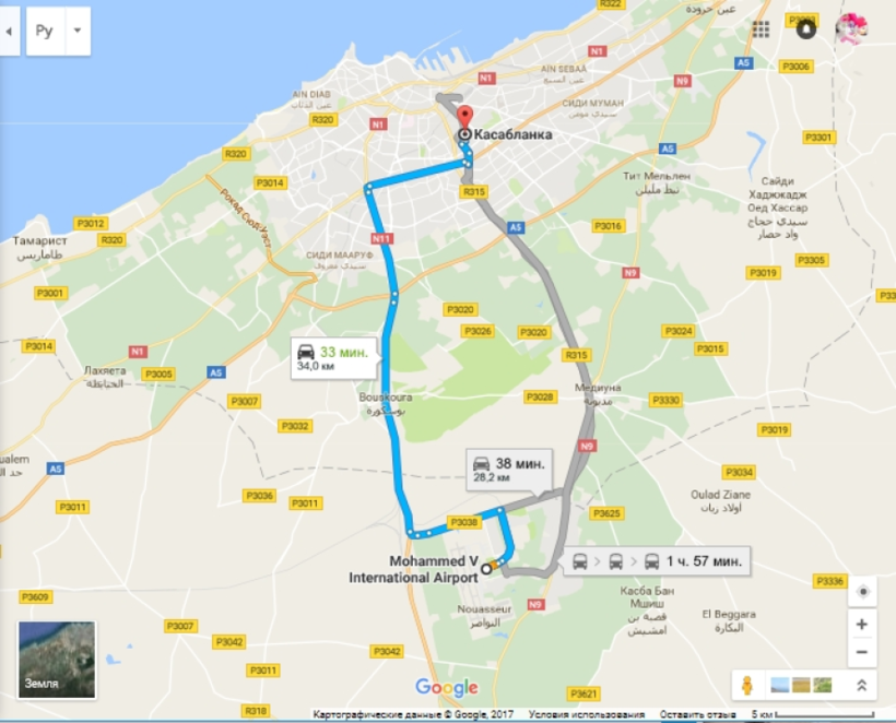 Здесь же, в аэропорту, есть фирмы по аренде автомобилей, а сравнить цены от разных прокатчиков можно тут. Доехать самостоятельно до центра города можно по трассе A7 Casa-Berchid через Bouskoura, далее уже по A5, R315.