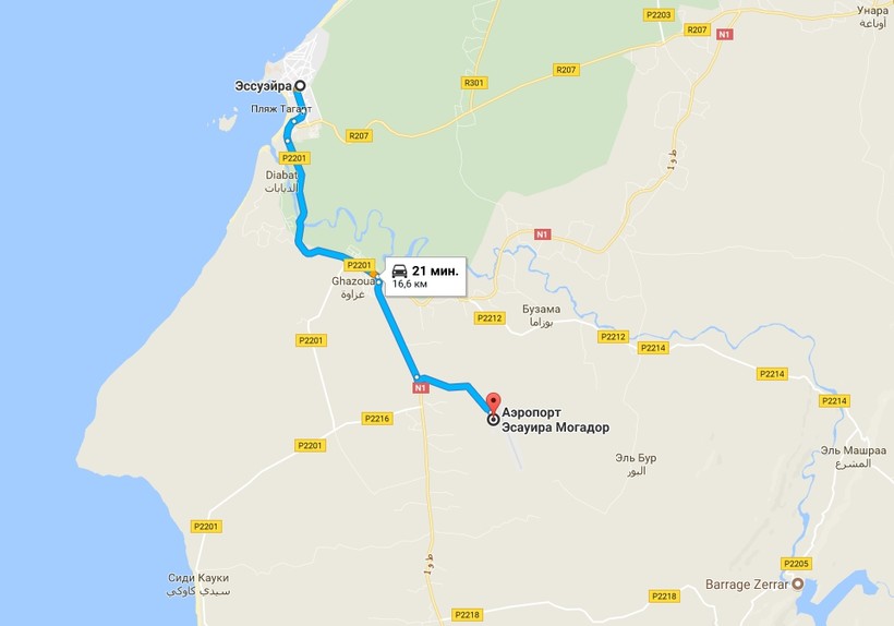В 18 км от Эсауиры расположен аэропорт, обслуживающий как местные, так и международные рейсы. Таким образом до портового города можно долететь как и из других столичных марокканских городов, так и из Евразии. Из России, а вернее даже из Москвы и только, летают Wizz Air, easy Jet, airBaltic, Meridiana, Air Moldova, Airoflot, Royal Air Maroc, Turkish Airlines и другие авиакомпании, однако летают они с двумя пересадками, как минимум, где-нибудь в Европе, от 20 до 30 часов в дороге и за билетную стоимость от 150 EUR в одну сторону. Подобные рейсы встречаются всего раза два в месяц, а в некоторых пересадочных пунктах еще и смену аэропорта требуют. Согласитесь, такой вариант не для нас?! Времени ведь и так у нас на все про все катастрофически мало!