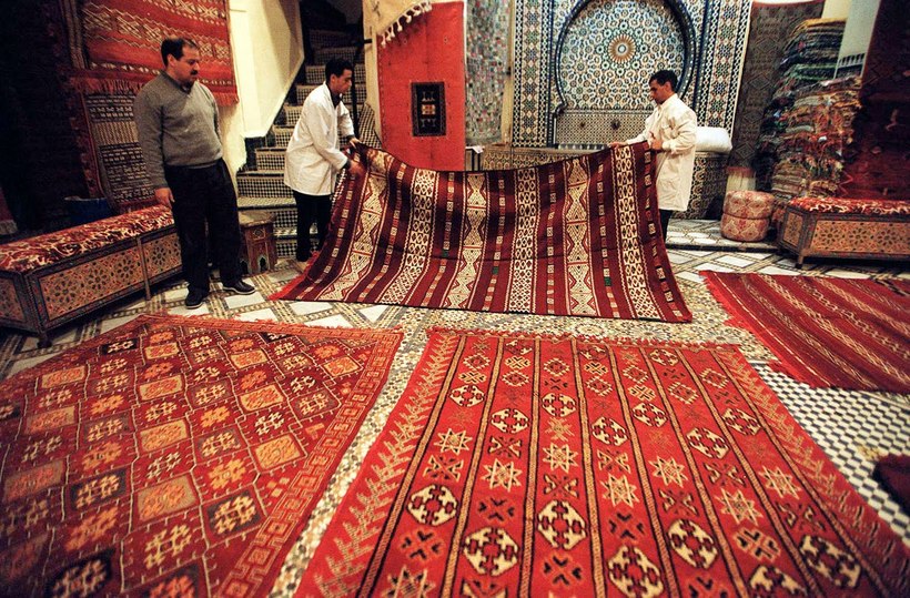 - Ковры-самолеты. Ковры ткут и в Фесе. Обычно ткут их там же, где и продают. Ловко заманивают покупателей, рассказывают и показывают весь процесс создания восхитительных ковров, а ведь и правда они великолепны, а после навязывают что-нибудь. Ковры покупать однозначно стоит. Пусть и не там, где навязывают, но все же. Бывают ковры всех размеров. Качество у них отменное. Стоят они прилично, да не так уж и дорого, как везде по миру.