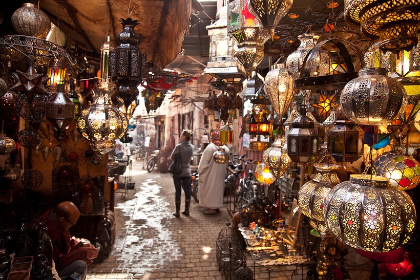 - Восточные лампы. Лампы, фонари, подсвечники, все то, что обрамляет свет, в Марокко выглядит фантастически красиво. За счет разноцветных слеклышек, узоров и формы, такие лампы по праву считаются одним из сказочных традиционных марокканских предметов. Продаются они везде. Стоят в пределах разумного. Увезти сложнее, чем купить.