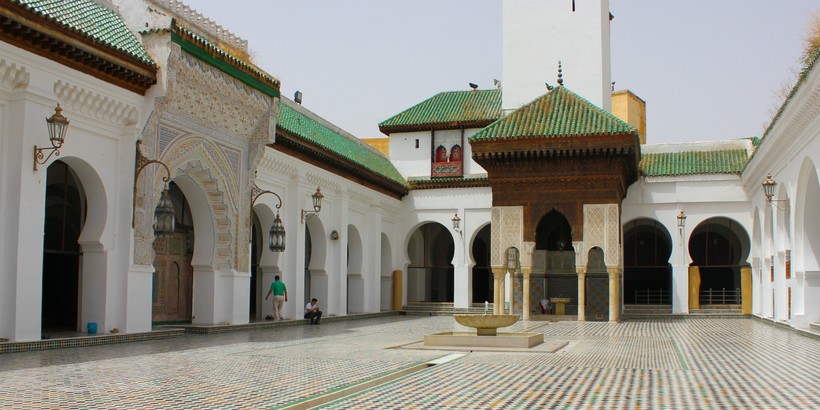 - Университет-мечеть Аль-Карауин. Это место зовут религиозно-образовательным комплексом, который включает в себя один из старейших университетов, созданный еще в 9 веке, а также постоянно действующую мечеть. Кроме того, на территории Аль-Карауина находится гробница основателя Феса – Идриса II.Место это по-истине прекрасное, но пускают внутрь, увы, не всех. Нам удалось лишь взглянуть на его величие через распахнутые двери.