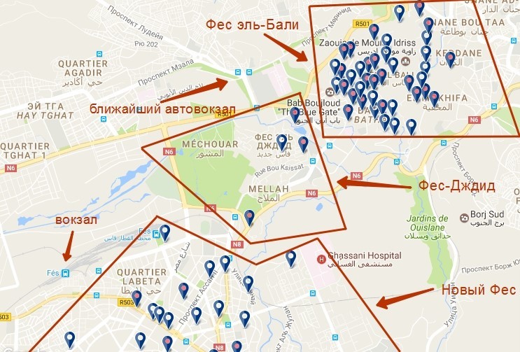 Фес сравнительно небольшой, а все must see сосредоточены в старой части города – Медине. А в целом город делится на три части: