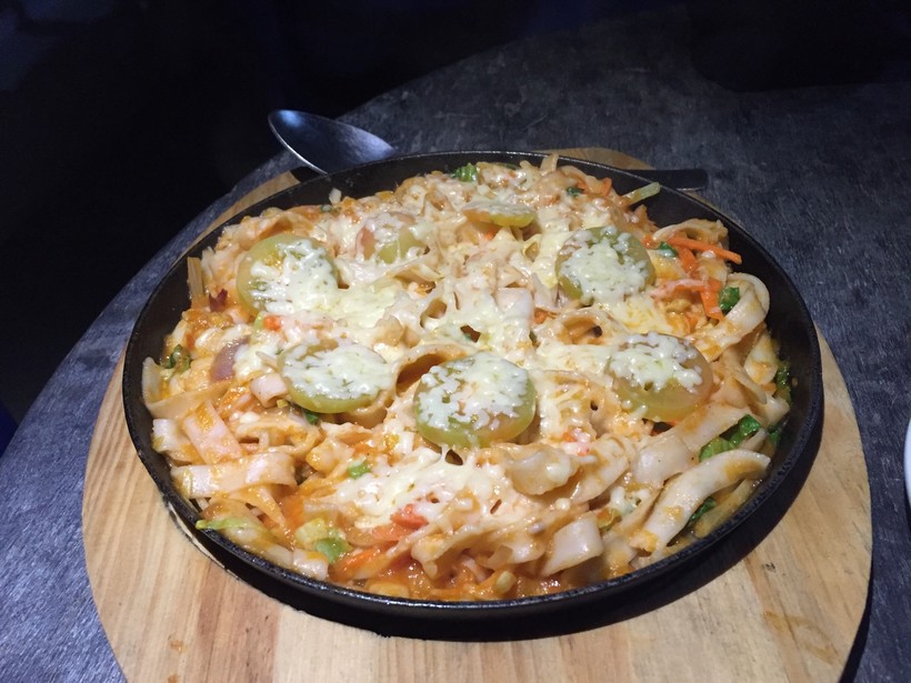- Сизлер. Это блюдо вы сразу же захотите попробовать, как только увидите, как его подают. Готовится из курицы или мяса яка. К нему идёт грибной соус, печеный картофель и овощи-гриль. Всё это находится на чугунной сковородке, а языки пламени пляшут на мясе, пока его несут ко столу. Вкусно и горячо!