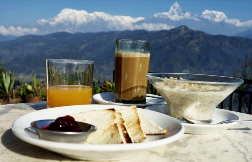 - Тибетский завтрак: тибетский хлеб, яичница/местное карри, тибетский чай.