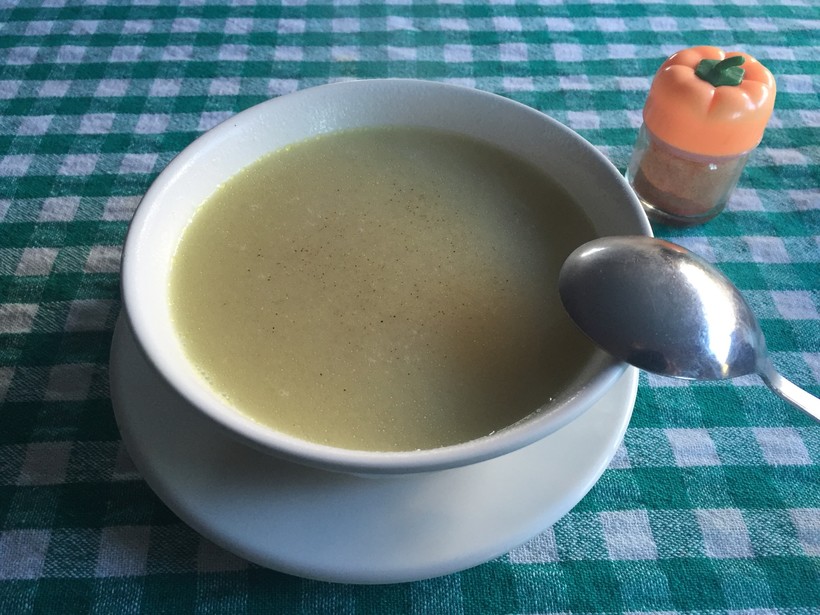 - Чесночный, томатный, картофельный и луковый суп — это популярная пища горных трекеров. В условиях дефицита продуктов хозяева кафе готовят эти простенькие супчики всего из нескольких ингредиентов, где основу составляет тот овощ, что в названии. Мне больше всего понравился чесночный и томатный суп, хотя все они хороши.