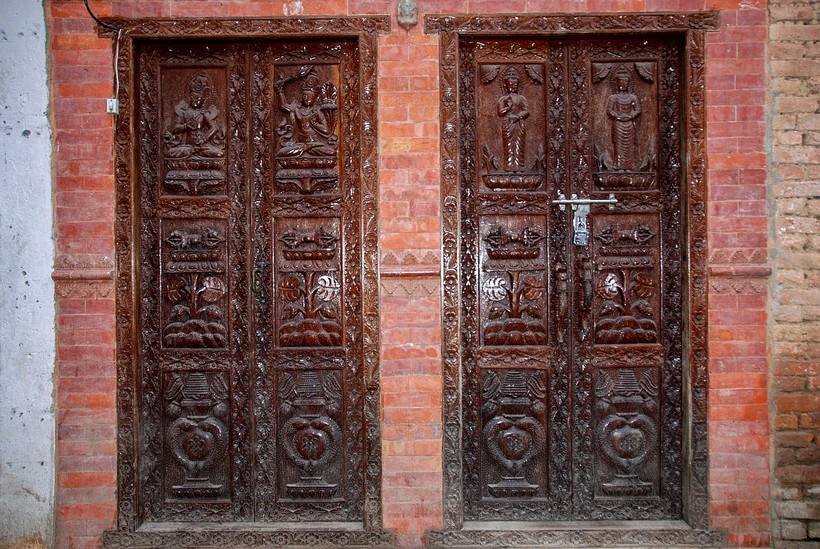 Когда я ходила по лабиринтам улиц Катманду в первый раз, удивлял контраст между облупившимися пыльными стенами домов и их невероятной красоты резными ставнями и дверьми. В Непале даже на самых захудалых и покосившихся зданиях можно увидеть искусную отделку деревом. Причём, это касается не только столицы, но и самых отдалённых районов: даже сарайчики и другие подсобные помещения в деревеньках могут похвастаться красивыми деталями из дерева.