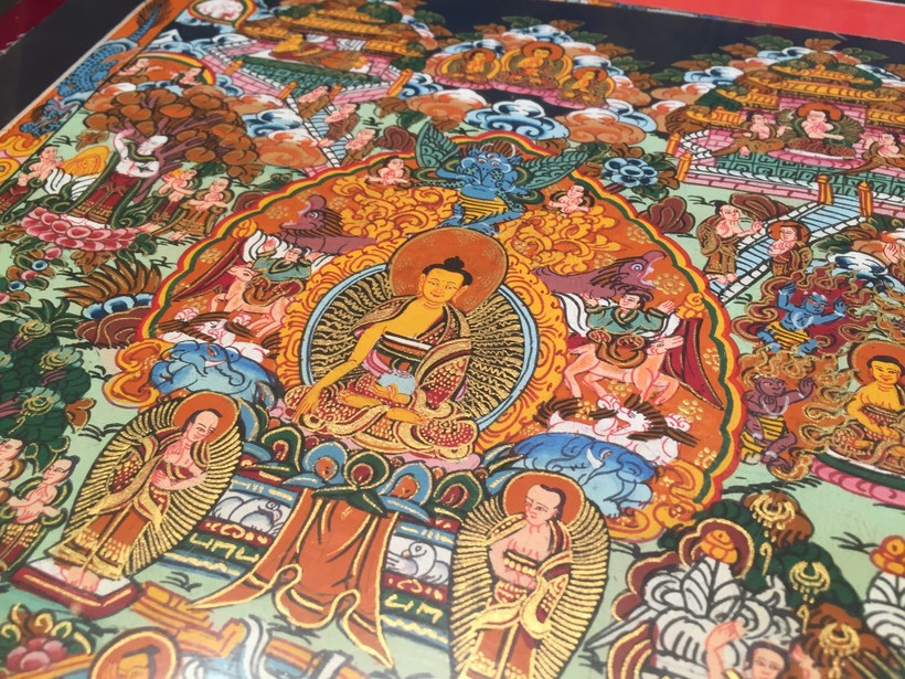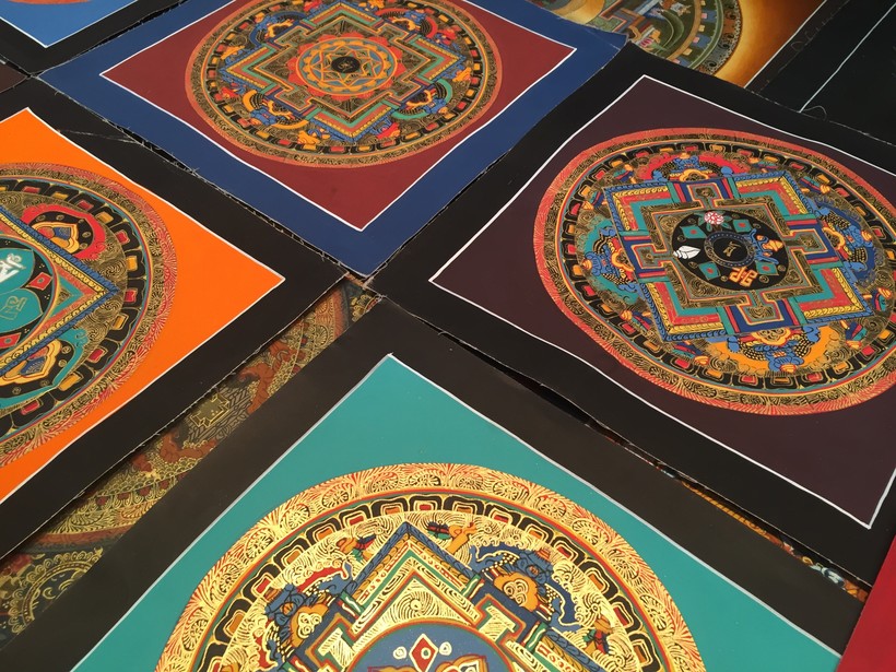Всё это танка (или тханка) — ритуальная тибетская живопись, что-то вроде наших икон. Обычно их создают буддийские монахи при монастырях, но есть и отдельные мастерские. В любом случае художник должен досконально разбираться в буддизме и знать, что он изображает. Работа кропотливая — очень много деталей и символов. Рассматривать картины танка можно бесконечно.
