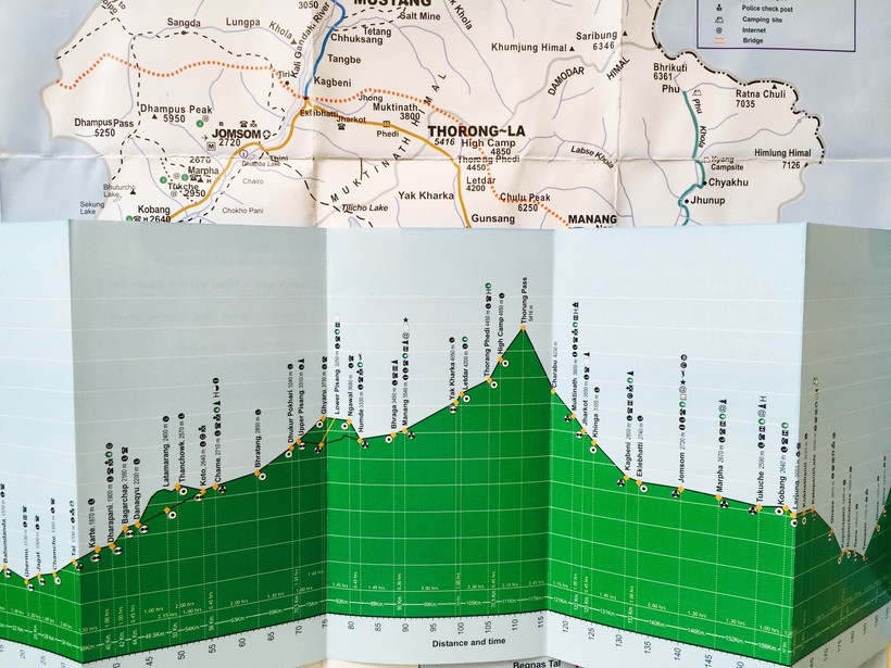 А ещё можно привезти в качестве сувенира карту маршрута, по которому вы ходили. Например, в трек «Вокруг Аннапурны» дают несколько видов бесплатных карт. Мне понравилась небольшая брошюрка с описанием маршрута, его особенностей, графиком высот. В книжных магазинах продаются и более интересные карты, с красивым оформлением и в большем масштабе.