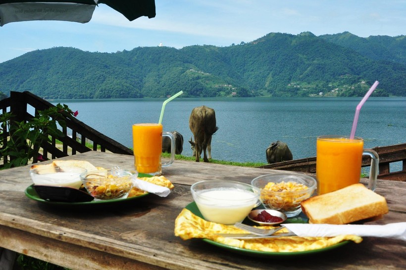 07:00. Завтрак в одном из симпатичных кафе Lake side. Обязательно попробуйте горячие пирожки с яблоком, это утренний специалитет Покхары!