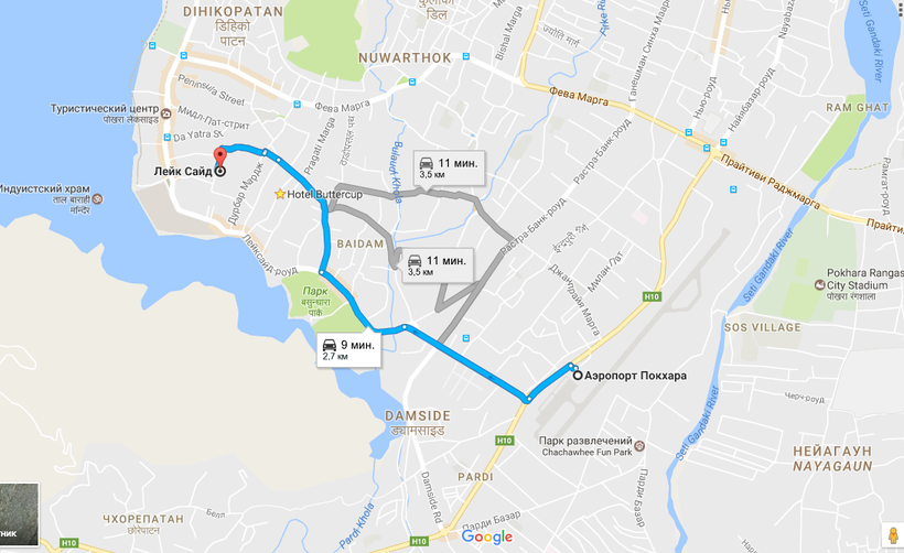Расстояние от аэропорта Аэропорт Покхара до Покхара — 8 км