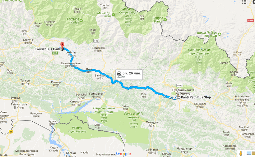 Все автобусы стартуют утром в 07:00 или 07:30 из точки под названием Kantipath. Это не автобусная станция, а просто участок дороги (см. карту выше).