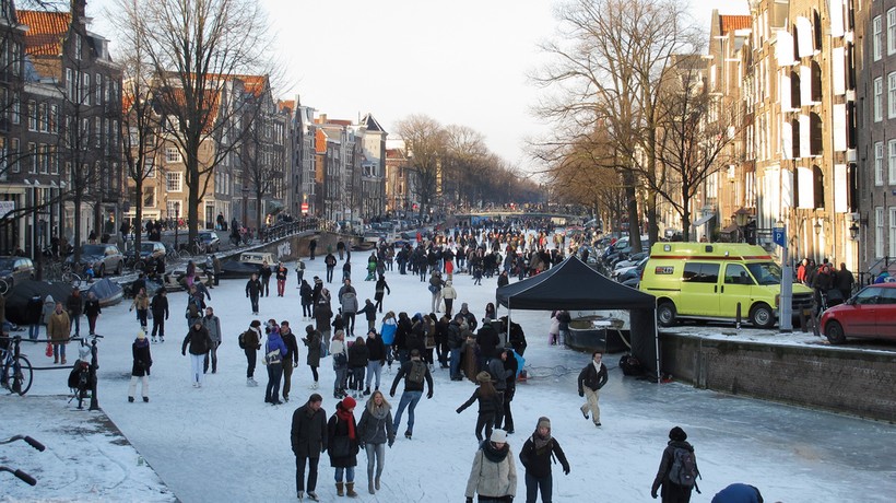 Зима в Амстердаме очень мягкая, максимальный холод составит −5°С, при этом отсутствует шквалистый ветер и большое количество осадков. Одним словом, благодать!
