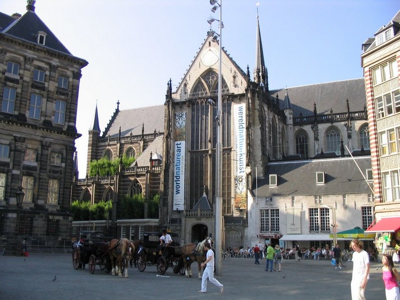 - Новая Церковь Nieuwe kerk (Gravenstraat 17) была построена аж в XIV веке и в настоящее время является самой популярной среди туристов. Достаточно яркая и симпатичная, она расположена рядом с Королевским дворцом на площади Дам. В ней часто проводятся выставки и благотворительные концерты, а также коронации и королевские бракосочетания. Особенное внимание уделите резному потолку, который датируется 1645 года.