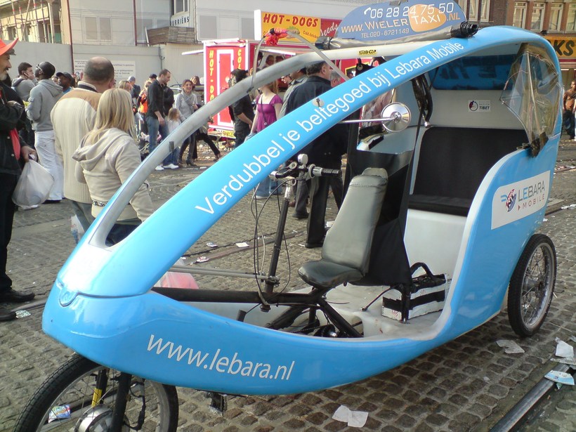Ещё один вариант — это Bike Taxi. Это велосипеды с кабинкой в форме капель, где сидит самый настоящий амстердамский рикша. Стоимость такой поездки варьируется от 10 EUR за 15 минут до 50 EUR за час.