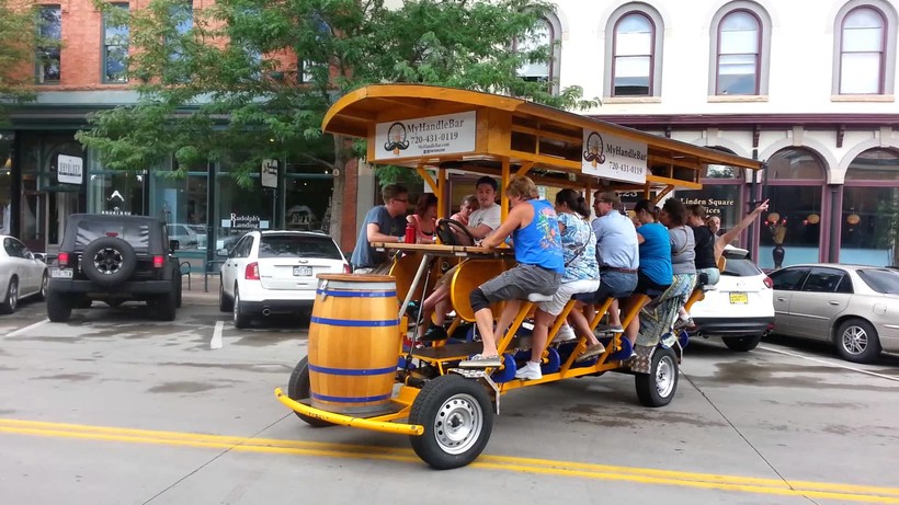 Ещё одна очень крутая штука для аренды под кодовым названием «Драндулет» (по факту — beer bike или пивной велосипед). Такой вид транспорта популярен среди групп молодёжи 6–8 человек и представляет собой стол с пивными кружками.