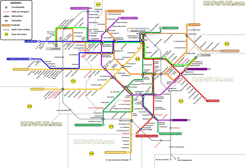 Метро в Амстердаме скорее наземное, чем привычное, лишь часть линии между Amsterdam Centraal и Amstel расположена под землей. Тут четыре ветки метро, три из них пересекают центральный вокзал. Все они идут в труднодоступные кварталы города.