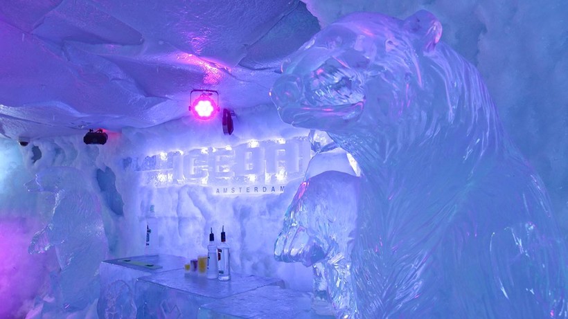 - Xtracold Icebar Amsterdam (Amstel 194-196) — это чуть ли не самый знаменитый бар Амстердама. Узнала я про него лет 13 назад, а тут довелось побывать вживую. Чем знаменит? Это бар изо льда, в котором изо льда сделано всё без исключения и температура воздуха составляет –9,5°С. Гостей заботливо одевают в стёганые перчатки и пальто, а на входе за 16 EUR дают жетончики на 2 напитка (плюс один предлагают в предбаннике). Экзотика на любителя... Эх, этих бы амстердамцев да на Новый Год в Россию-матушку!