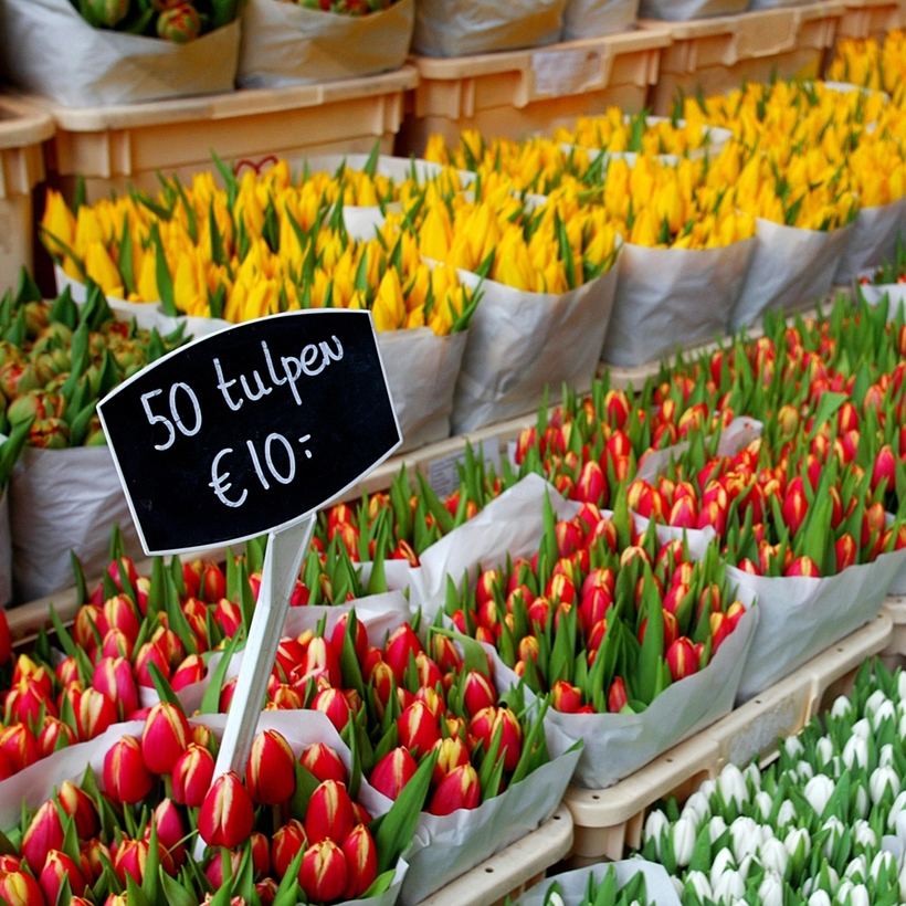 - Плавучий цветочный рынок (Bloemenmarkt) является самым известным цветочным рынком в мире. Он находится на канале Singel с середины XIX века и работает ежедневно с 9 часов (по воскресеньям с 11 часов). Магазины расположены на баржах вдоль набережной и предлагают свежесрезанные цветы, семена и луковицы, в декабре — ёлки. Больше всего здесь, конечно же, тюльпанов.