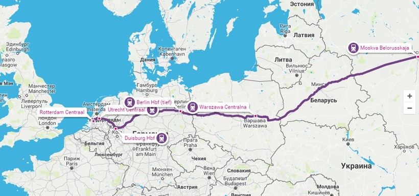 Расписание поездов Варшава – Берлин и Берлин – Роттердам (Амстердам) удобно смотреть на этом сайте. Таким образом, вы потратите на путь на поезде в одну сторону 31 час и как минимум 215 EUR.