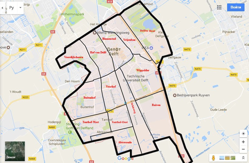 Стоит присмотреться к самому крупному району Делфта – Wippolder. Здесь относительно небольшое число жителей, спокойно и много зелени, а большая часть зданий принадлежит Техническому университету. Для автомобилистов этот район идеален благодаря наличию парковочных мест и пролегающей неподалеку трассе А13. Также через район проходят несколько автобусных маршрутов.