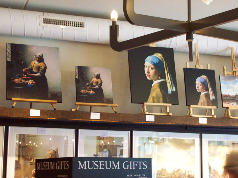 Ещё я очень люблю заглядывать в сувенирную лавку при Центре Вермеера. Здесь продаются магниты с картинами художника за 2.95 EUR, наборы шоколадок за 4.25 EUR, постеры, паззлы, блокноты и много разных приятностей.