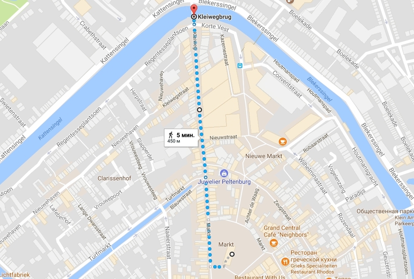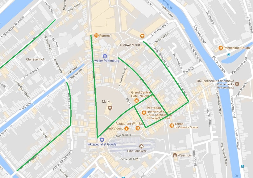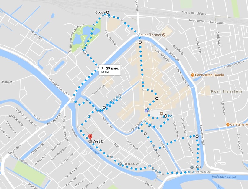 - 16:00 — после музея можно прогуляться по городу: мой маршрут пролегает мимо крытых рыбных рядов на набережных Hoge- и Lage Gouwe, парк на улице Houtmansplantsoen.