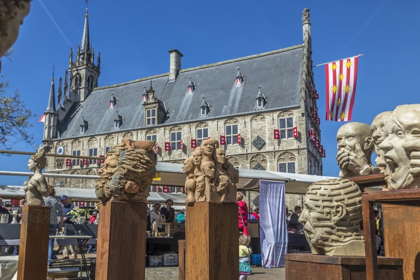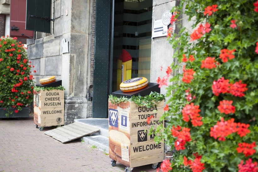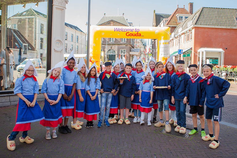 - Ярмарка сыра. Казалось бы, почему именно этот городишко на юге Нидерландов так прославился своим сыром? А дело в том, что его производство было налажено здесь ещё за несколько веков до того момента, как страна стала называться Соединёнными провинциями. В действительности, самый известный сыр, ради которого я приезжала в Гауду, не производился здесь, а лишь активно продавался на протяжении веков. На ярмарке, воссоздающей атмосферу средневекового рынка, можно продегустировать различные сорта сыра, посмотреть на технологию его приготовления (и даже самим поучаствовать в процессе), накупить сувениров или просто попить кофе на террасе ратуши. С самого утра на протяжении нескольких летних месяцев ради этого сюда съезжаются толпы туристов со всех уголков мира. Проходит ярмарка с апреля по конец августа по четвергам. С 10 утра до 12:30 часов дня можно увидеть сырные торги, когда на площади перед ратушей раскладывают сырные головы, заключают сделки, скрепляя их крепким рукопожатием, и взвешивают сыр в расположенном рядом здании весов De Goudse Waag. Во второй половине дня можно просто гулять по городу или участвовать в различных мастер-классах.