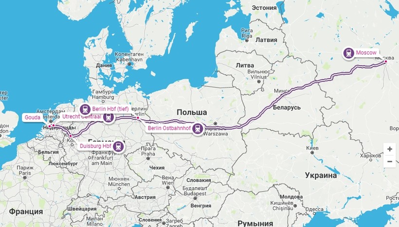 В одной из своих статей я уже описывала маршрут до Нидерландов на поезде. В последнее время он заметно упростился благодаря появлению фирменного поезда «Стриж», курсирующего между Москвой и Берлином. Раньше состав отправлялся с Курского вокзала, а с 11 июня 2017 года — с Белорусского: всё так же, 2 раза в неделю, по субботам и воскресеньям. Актуальное расписание уточняйте на сайте РЖД. Примерно 1900 км за 22 часа обойдутся любителю поездов от 145 EUR в одну сторону (за сидячее место) — что тут скажешь, удовольствие не из дешёвых.