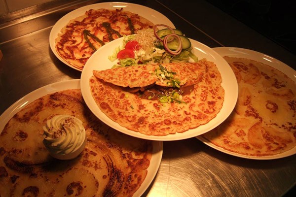 Еще одно различие в том, что голландский блин служит основой для пиццы. На блины кладут самую разную начинку – например, полоски бекона, сыра, яблок или изюм.