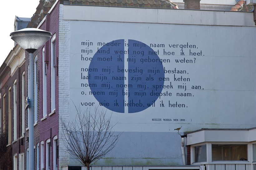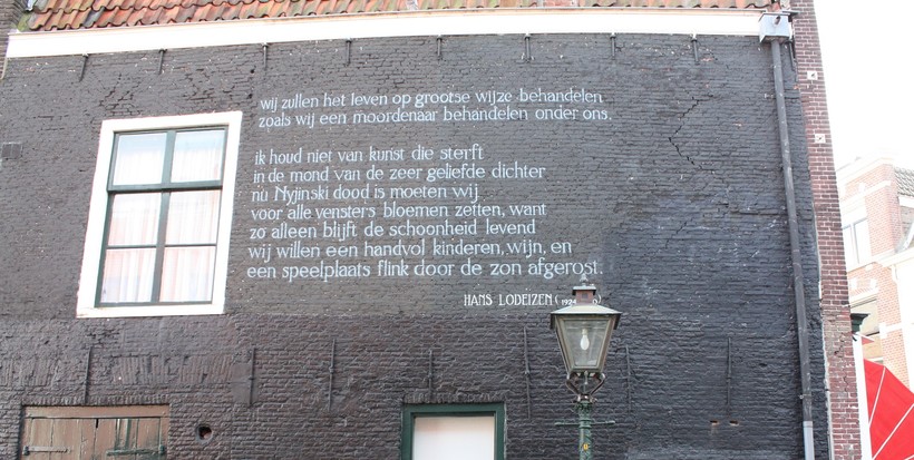 И, наконец, самая необычная необычность Лейдена, моя самая любимая библиотека на свежем воздухе, доступная всем круглогодично — стихи на стенах города (оригинальное название проекта "Poems and Walls"). Да-да, прямо на стенах зданий. Ходишь и читаешь.