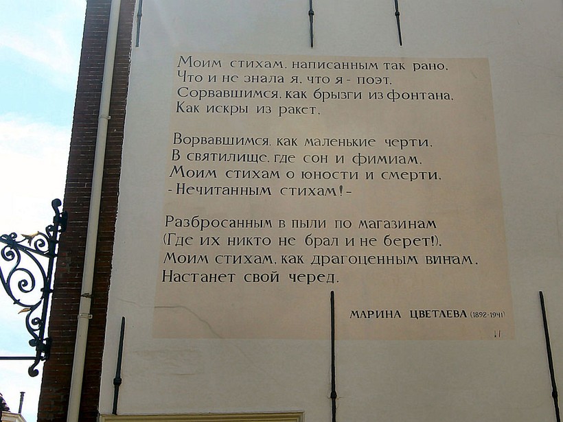 Все стихи на языке оригинала. Идея пришла в голову основателям фонда Tegen-Beeld (перевести можно как "Отражение", но за точность перевода не ручаюсь, фонд нидерландско-бельгийский, по-французски я пока не очень, могу что-нибудь напутать). Говорят, что проект в целом посвящен тому, что Лейден является родным городом для большого количества творческих и талантливых людей, и вот таким образом это было решено продемонстрировать. Все началось в 1992 году со стихотворения (патриотизм просто зашкаливает сейчас) Марины Цветаевой "Моим стихам".