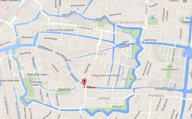 Адрес Langebrug 6-A, 2311 TK Leiden, Netherlands. С четверга по субботу открыт с 23 до 02. Средний чек 20 евро.