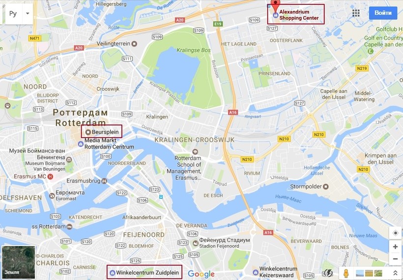 - У торговых центров de Bijenkorf, Zuidplein, Alexandrium.