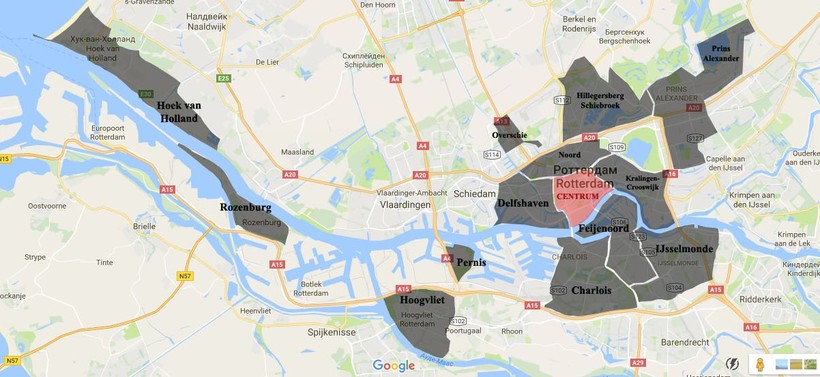 Роттердам состоит из 14 крупных районов, которые также делятся на кварталы: