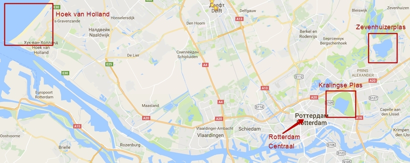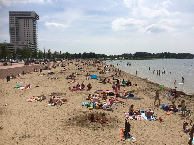 - В пределах города есть два больших озера — Kralingse Plas и Zevenhuizerplas, и в тёплые солнечные дни на прилегающих к ним пляжах достаточно многолюдно. В парке у Kralingse Plas кроме пляжа оборудованы места для барбекю, а велосипедные дорожки позволяют совершить велопрогулку вокруг озера. У Zevenhuizerplas раскинулся пляж Nesselande с проспектом Крит и бульваром Сицилия, пальмовыми деревьями, палатками с мороженым. Одним словом, находясь здесь, я ощущаю себя где-то на просторах южной Европы.