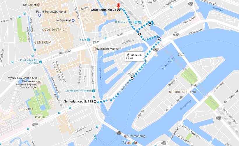 Выйдя из здания станции Rotterdam Centraal, вы окажетесь на улице Kruisplein. Пройдите немного вперед до перекрёстка. Здесь у вас есть выбор: направо по улице West-Kruiskade можно исследовать Китайский квартал с его традиционными ресторанами и супермаркетами, где я всегда теряюсь в названиях и предназначениях некоторых продуктов. Дойдя до пересечения с Heemraadssingel, поверните налево и двигайтесь в сторону набережной — вы попадёте в исторический квартал Делфсхавен.