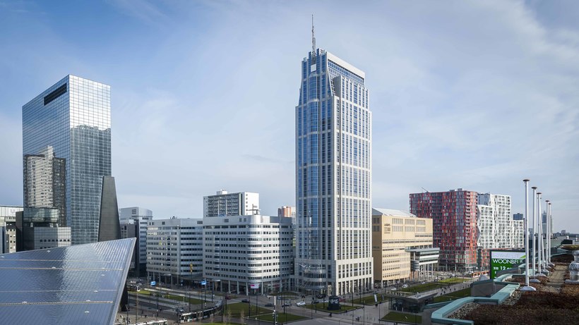 Если следовать от Центральной станции налево по Schouwburgplein, пройдите мимо концертного зала De Doelen, полюбуйтесь на саму площадь, где устраиваются городские праздники. Затем по пешеходной Korte Lijnbaan мимо многочисленных магазинов дойдите до здания городской мэрии — ещё одного сооружения, уцелевшего после бомбардировок города. После осмотра мэрии сверните направо и продолжайте путь вдоль Coolsingel. По обе стороны от вас будет множество магазинов и торговых центров, где можно провести не один час. Двигайтесь вперед и дойдёте до моста Эразма, откуда открываются живописные виды на город и комплекс башен De Rotterdam, круизный терминал и отель Нью-Йорк. Эту часть города местные жители называют Манхэттен-на-Маасе и очень гордятся очертаниями высотных зданий на фоне горизонта.