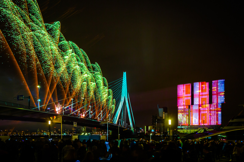 - В середине ноября в городе начинает ощущаться предновогоднее оживление. Открываются ёлочные базары, ярмарки. 25 декабря голландцы отмечают Рождество, а в новогоднюю ночь ровно в полночь с моста Erasmusbrug запускают красочный салют — этой традиции уже 10 лет. Но примерно к трем часам утра волшебство новогодней ночи исчезает бесследно вместе с гуляющими толпами людей, которые рассеиваются по ночным клубам или возвращаются домой, чтобы хорошенько выспаться перед новой рабочей неделей — ведь здесь нет таких длинных праздников, как в России.