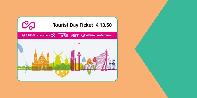 - Tourist Day Ticket подойдёт для насыщенного дня, если вы хотите посетить много мест сразу и вам нужно постоянно пользоваться общественным транспортом. Карта стоит 13.50 EUR и действует в течение дня с момента активации и до прекращения работы транспорта. С картой можно пользоваться метро, автобусом, трамваем, речным автобусом в регионе Гааги и Роттердама (а это и Лейден, Дордрехт, Гауда, Делфт, Брилле, Ауддорп, Киндердейк).