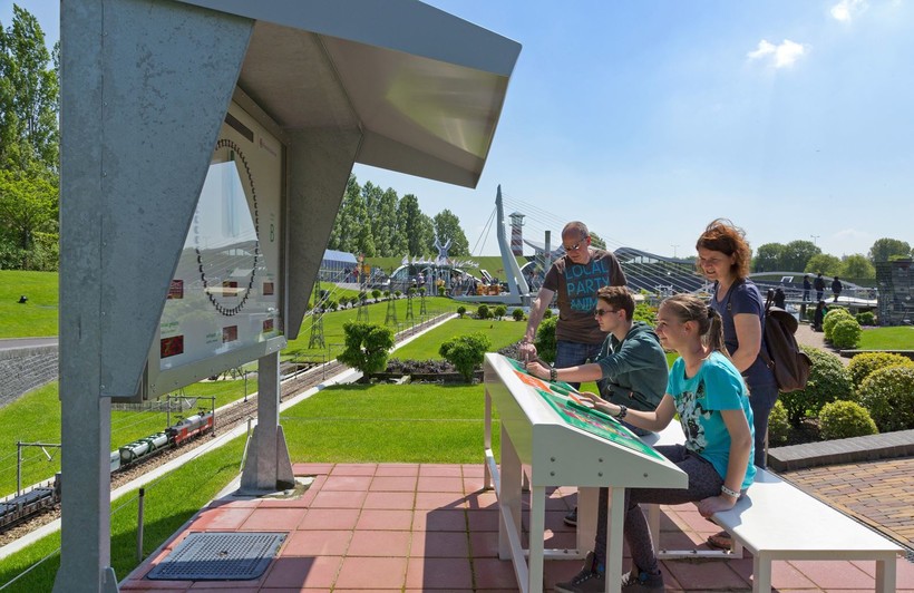 В парке советую ознакомиться с основными достопримечательностями страны: королевскими дворцами и знаменитыми церквями, Дворцом мира и аэропортом Схипхол, разводящимся в две стороны морским сооружением в Хук-ван-Холанд, Домским собором в Утрехте — и просто домиками с красными крышами.