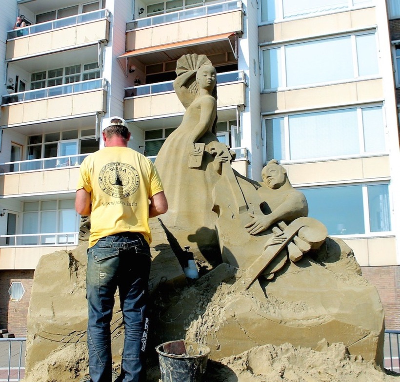 В период с июля по август, прямо у моря, проходит грандиозный Фестиваль песчаных скульптур. На него съезжаются скульпторы и художники со всей Голландии. Творческая площадка для создания шедевров раскинулась на несколько километров на центральном пляже. Для этого дополнительно привозят большое количество песка. Ширина пляжной полосы около 100 метров и если использовать местный песок, то его не хватит и на пару скульптур. А размах у художников большой и композиции они делают очень объемные.